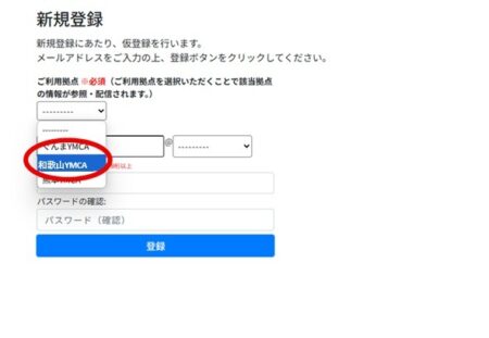 ※注意ポイント! ご利用拠点は必ず「和歌山YMCA」を選んでください