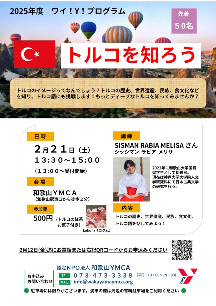 和歌山YMCAでは、地域の皆さまに海外の国々への理解を深めていただくことを目的に、毎年「ワイ!Y!プログラム(国際理解セミナー)」を行っています。